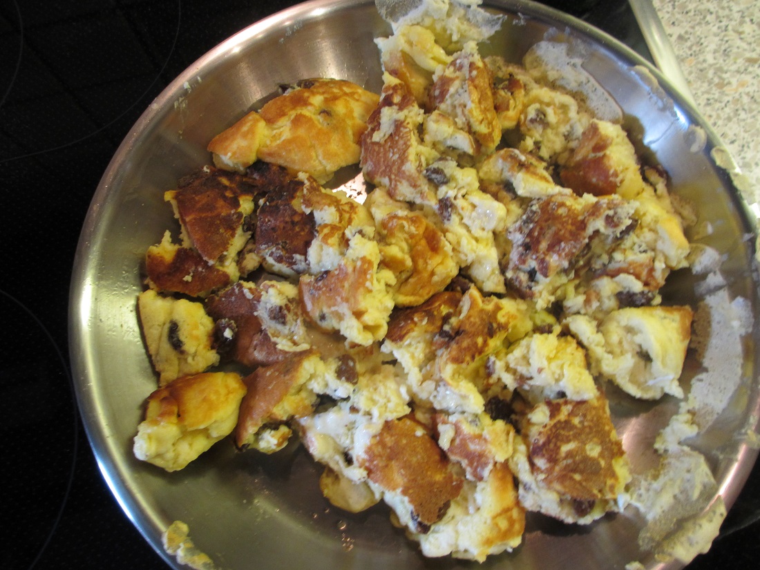 Danach teilst du den Kaiserschmarrn mit dem Pfannen wender in mundgerechte Stücke auf und lässt ihn noch einige Minuten in der Pfanne – in der du immer wieder rührst.