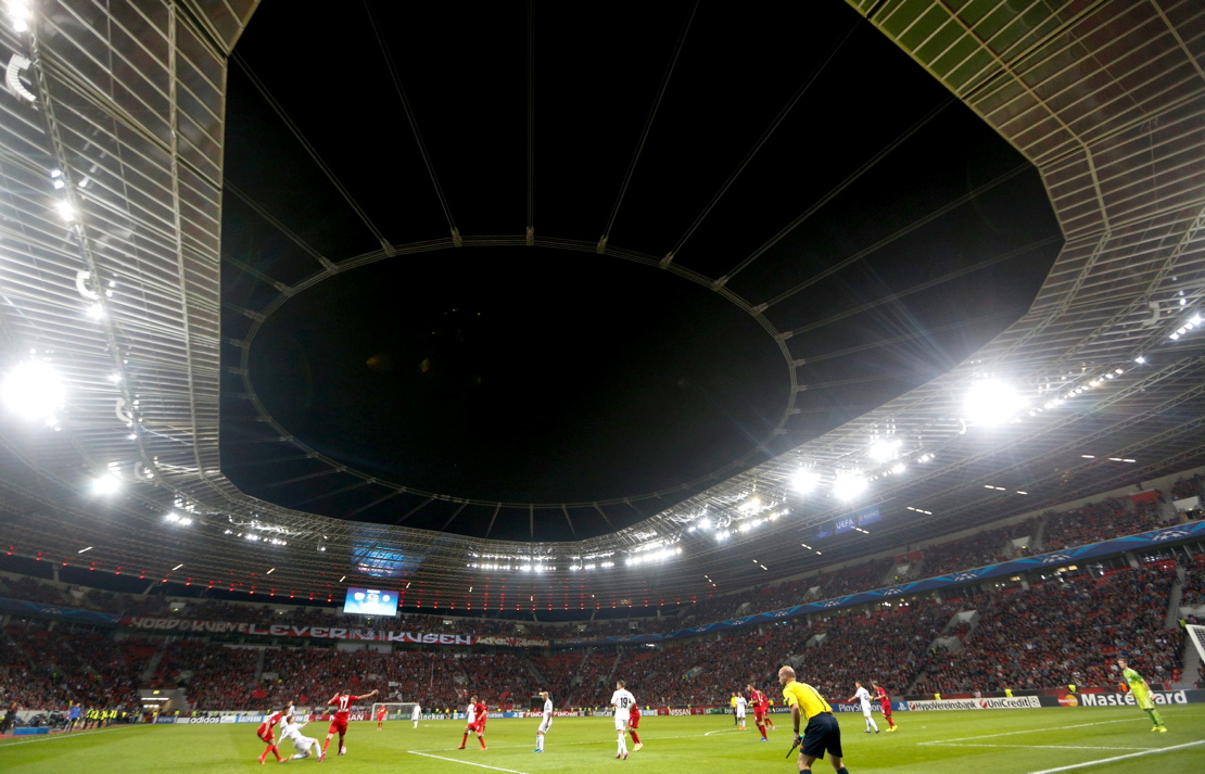 Fußball Champions League Qualifikation: Bayer 04 Leverkusen – FC Kopenhagen am 27.08.2014 in der BayArena in Leverkusen (Nordrhein-Westfalen). Eine Innenansicht zeigt die BayArena. Foto: Ina Fassbender/dpa +++(c) dpa – Bildfunk+++