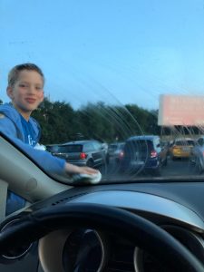 Normalerweise wären nachmittags und abends meine Großeltern gekommen. Aber das ging natürlich nicht. Deshalb hat sich meine Schwester eine typische Corona-Überraschung einfallen lassen: Abends ist sie mit mir ins Autokino gefahren! Da war ich bisher noch nie. Wir haben dort „Der Spion von nebenan“ gesehen. Der Film war echt klasse – und einen Film aus dem Auto heraus zu sehen, ist wirklich cool: Man fährt mit dem Auto auf eine Bodenwelle, so dass man gut nach oben auf die riesige Leinwand schauen kann. Dann stellt man das Autoradio auf eine bestimmte Frequenz und hört über die Autolautsprecher den Ton zum Film!