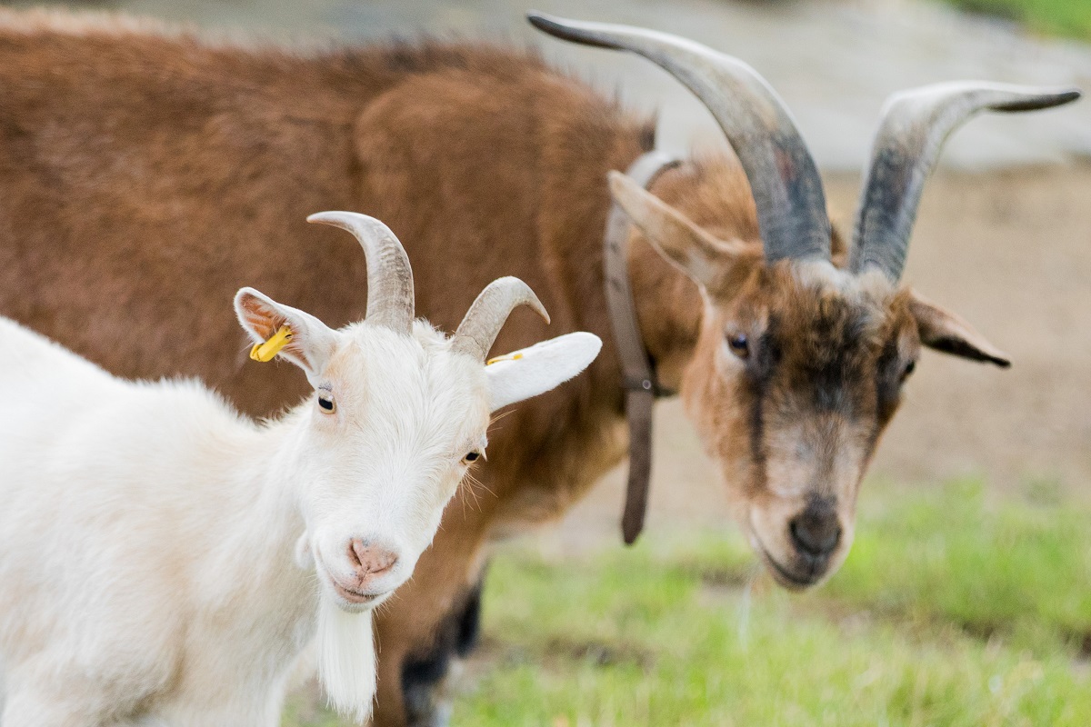 “Hennes VIII.” (r), und seine neue Partnerin, Ziege “Anneliese II.” wohnen im Zoo in Köln. (Foto: dpa)