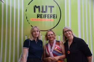 Ute Pfeiffer-Frohnert, Fine Haiduck und Barbara Pagenkemper vom NaturGut Ophoven hatten die Idee, eine Ausstellung über Mut zu machen. Sie finden, dass alle Mut und Zuversicht brauchen, um sich mit dem Thema Klimawandel auseinanderzusetzen und gemeinsam eine nachhaltige Zukunft zu gestalten. Also eine Zukunft, in der auch noch deine Enkel und Urenkel gut und glücklich leben können. Auf dem Gelände der Ausstellung war einmal eine Bananenreiferei. Dort, wo die Früchte reiften, reift jetzt Mut! Zwei Jahre haben die drei Frauen zusammen mit Spiele- und Ausstellungsdesign-Fachleuten geplant und überlegt, bis alles so spannend und ermutigend war, wie sie es sich vorgestellt hatten. Trotzdem waren die Erwachsenen vor der Ausstellungseröffnung richtig aufgeregt.