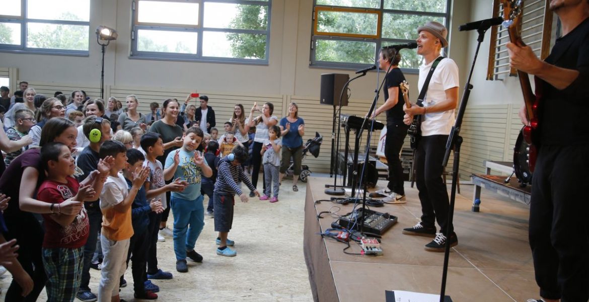 „Das war wie ein kleines richtiges Konzert, weil so viele Schüler da waren“, sagte Sänger Oliver begeistert. Rund 500 Kinder ließen den Hallenboden beben.