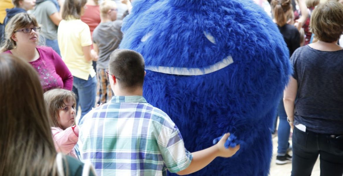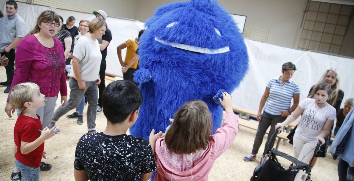 Die Freude über die Sänger war dann auch super groß: Die Schüler hüpften, klatschten, tanzten und sangen aus voller Kehle mit, als Cat Ballou die Bühne enterten. Fast eine Stunde spielten sie viele bekannte Lieder. Besonders gut kam das Lied „Tanzroboter“ an. Darin geht es darum, dass jemand es nicht sein lassen kann, zu tanzen. Immer wenn Musik spielt, legt er los und tanzt – und das traf auch auf die Schüler zu. Cat Ballou gaben den Takt an: In allen Schulen trabten die Kinder von links nach rechts und wieder zurück – und Maskottchen Duda war mittendrin!