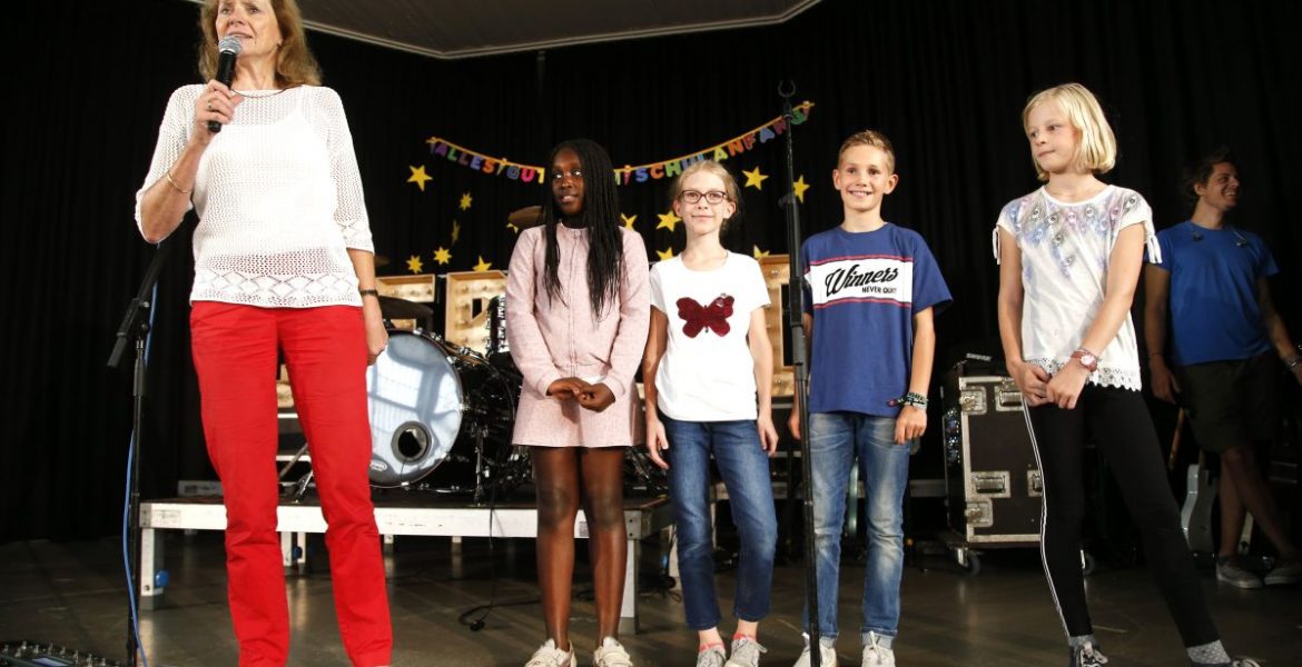 Für Cat Ballou gab es noch ein Highlight: Sie wurden von einigen Schülern interviewt. Dabei verrieten sie: Noch immer haben sie vor jeder neuen Show ein bisschen Lampenfieber. „Man weiß nie, was passiert“, sagte Keyboarder Dominik, der wie seine Kollegen von den Kindern Fan-Briefe geschenkt bekam.