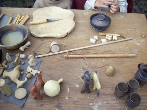 Auch verschiedene kleine Ziegenknochen haben die Kinder nachgebildet. Sie werfen sie hoch und fangen sie mit dem Handrücken wieder auf. Brettspiele gab es im 12. Jahrhundert ebenfalls. Damals wurde Mittelalter-Schach gespielt, eine einfache Form des Spiels mit einem Brett aus Lindenholz. Alkerke ist ein Vorgänger des Damespiels. „Ich verliere dabei leider ziemlich oft“, sagt Paul.