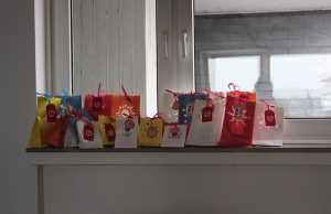 Sie freut sich über einen Adventskalender, der aus 24 bunten Papiertüten besteht. Jeden Tag wird Valentina dort eine kleine Überraschung herausnehmen dürfen. Die Geschenke stehen auf der Fensterbank, heute durfte sie den Kalender zum ersten Mal öffnen. Und, was war drin, Valentina?