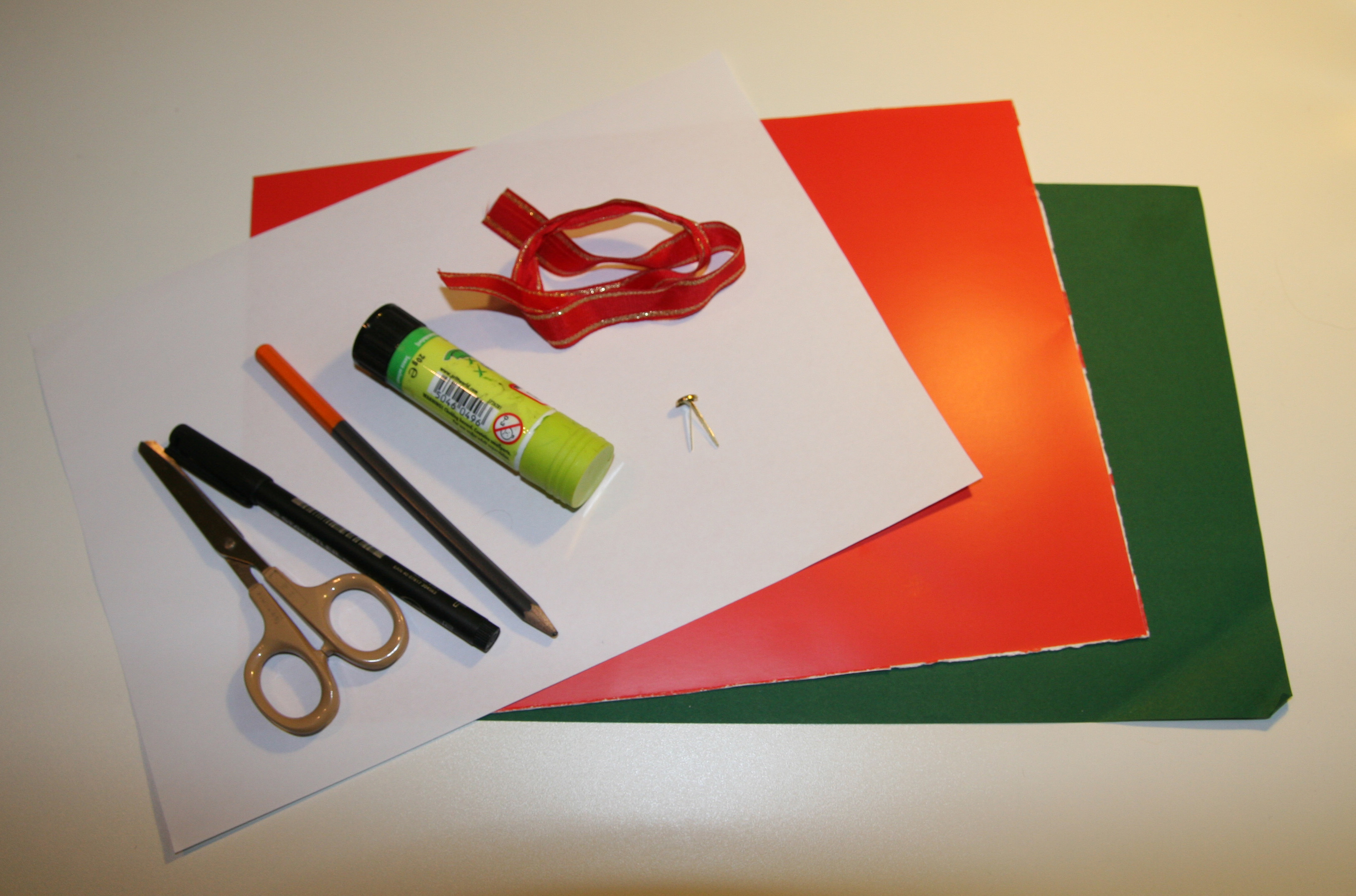 1. Auf den grünen Tonkarton einen Unterteller legen als Schablone (Durchmesser 15cm). Mit Bleistift einen Kreis aufmalen und ausschneiden. Die rote Pappe soll die Form eines roten Stiefels bekommen. Den Stiefel malen wir so breit und so hoch, dass er etwas größer ist als der grüne Pappkreis, wenn man die beiden übereinander legt.