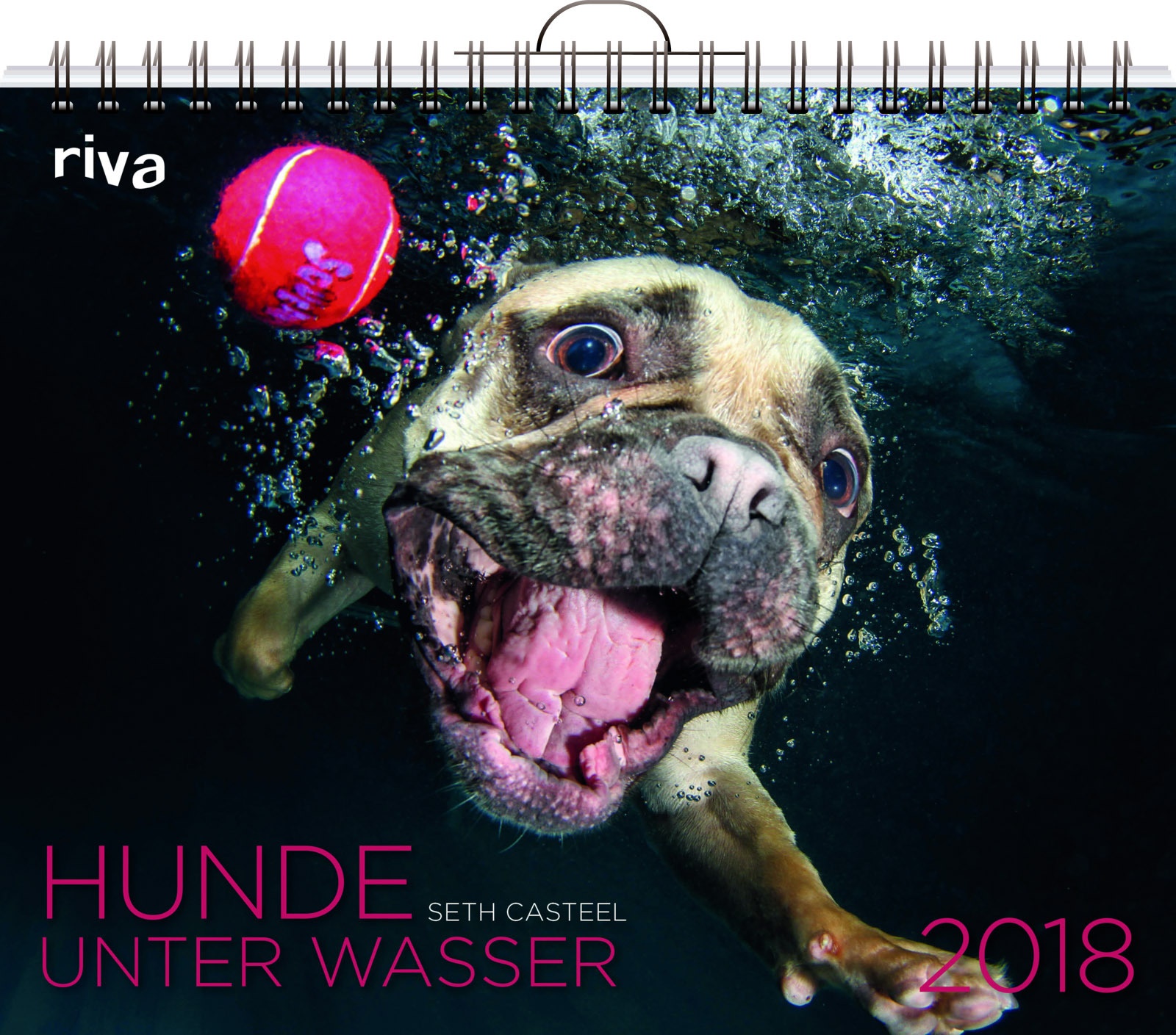 HANDOUT – Das undatierte Foto zeigt das Cover des Fotokalenders «Hunde unter Wasser», erschienen bei riva. Hunde sehen beim Tauchen sehr lustig aus. ACHTUNG: Nur für Bezieher des Dienstes dpa-Nachrichten für Kinder unter Nennung des Urhebers Foto: riva +++(c) dpa – Nachrichten für Kinder+++