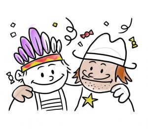 Bist du auch richtig in Karnevalsstimmung und würdest am liebsten den ganzen Tag feiern, singen, tanzen und am Zugrand stehen? Dann haben wir etwas für dich – nämlich für die Zeit, in der gerade mal kein Zug geht und keine Feier ist: Unser Illustrator Christoph Jansen hat sich einen neuen Comicstrip ausgedacht und zeigt dir in vier Schritten, wie du zwei Jecke zeichnen kannst. Er hat sich für die klassischen Kostüme Cowboy und Indianer entschieden. Also: Hol’ Stifte und Papier raus, dreh die Karnevalsmusik laut und leg los! Viel Spaß und Kölle Alaaf!