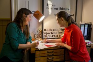 „Meist hat Eva eine erste Idee für eine Geschichte und dann diskutieren wir darüber“, sagt Sabine. „Wir gehen dabei spazieren oder setzen uns ins Café. Das kann ein paar Tage dauern, in denen wir unsere Einfälle wie beim Pingpong hin- und herspielen“, ergänzt Eva. Am liebsten schreibt sie auf dem Laptop. Wenn ihr spontan etwas einfällt, kritzelt sie einen Geistesblitz auch schon mal auf einen Kaffeefilter. Für Sabine ist ihr Skizzenbuch wichtig. Sie macht erste kleine Zeichnungen der Figuren, sogenannte Scribbles. „Es geht bei uns nicht darum, wer die beste Idee hat. Wir überlegen solange hin und her, bis es für uns rund ist“, sagt Sabine. Klar ist: Beim Text hat Eva den Hut auf, bei den Illustrationen ist es Sabine. Immer wieder stimmen sie sich ab, sodass zum Beispiel ein Witz nicht zugleich im Text und als Bild im Buch vorkommt.