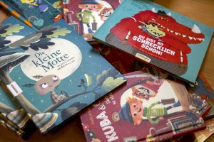 Mit vielen weiteren Ideen im Gepäck machten sich Eva und Sabine als Nächstes auf zur Frankfurter Buchmesse. Dort treffen sich jedes Jahr Verlage, Autoren, Illustratoren und Übersetzer und stellen ihre neuen Bücher und Ideen vor. Die Geschichte „Du bist so schrecklich schön!“ von Dully&Dax über das kleine Monster Gregor fand ein großer Kinderbuchverlag so toll, dass er sie 2015 als Buch veröffentlichte. Inzwischen haben Eva und Sabine sieben Bücher zusammen herausgebracht, die auch in viele Sprachen übersetzt und sogar in Theaterstücke und Hörspiele verwandelt wurden. Gerade arbeiten sie an ihrem achten Buch: „Willkommen in der Wichtelwelt“.