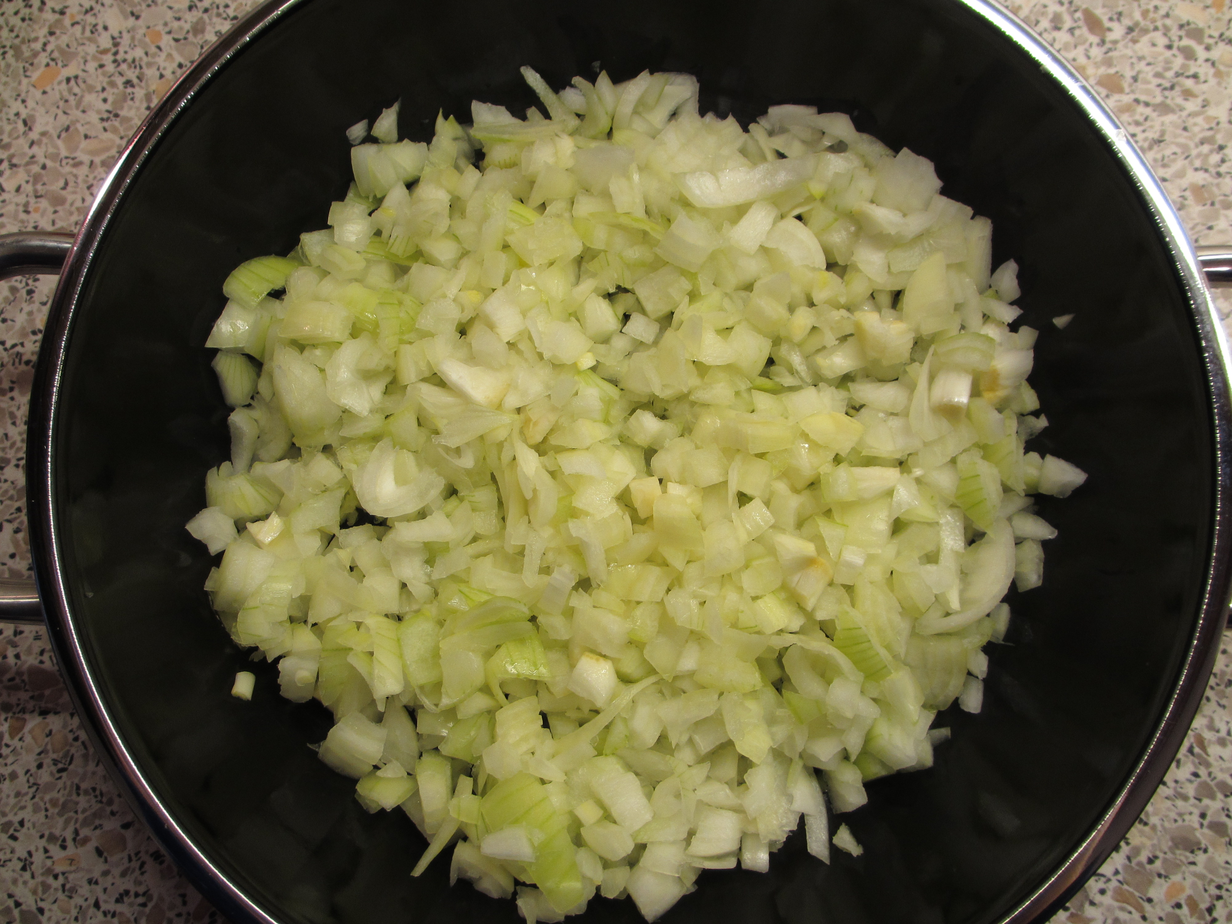 - Als erstes schälst du die Zwiebeln und schneidest sie in kleine Würfel.
