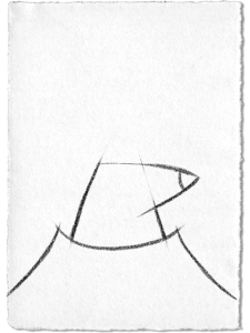 Zeichne zwei Dreiecke mit abgeschnittener Spitze – eins für den Maulwurf, eins für seinen Hügel. Auf das obere Dreieck kommt dann noch ein Pfeil nach rechts für die Nase.