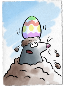 Aber: Nichts spricht gegen eine traditionelle Ostereier-Suche zu Hause oder im Garten. Ob du vielleicht auch ein Osterei auf einem Maulwurf-Hügel findest, so wie in unserem Comic?