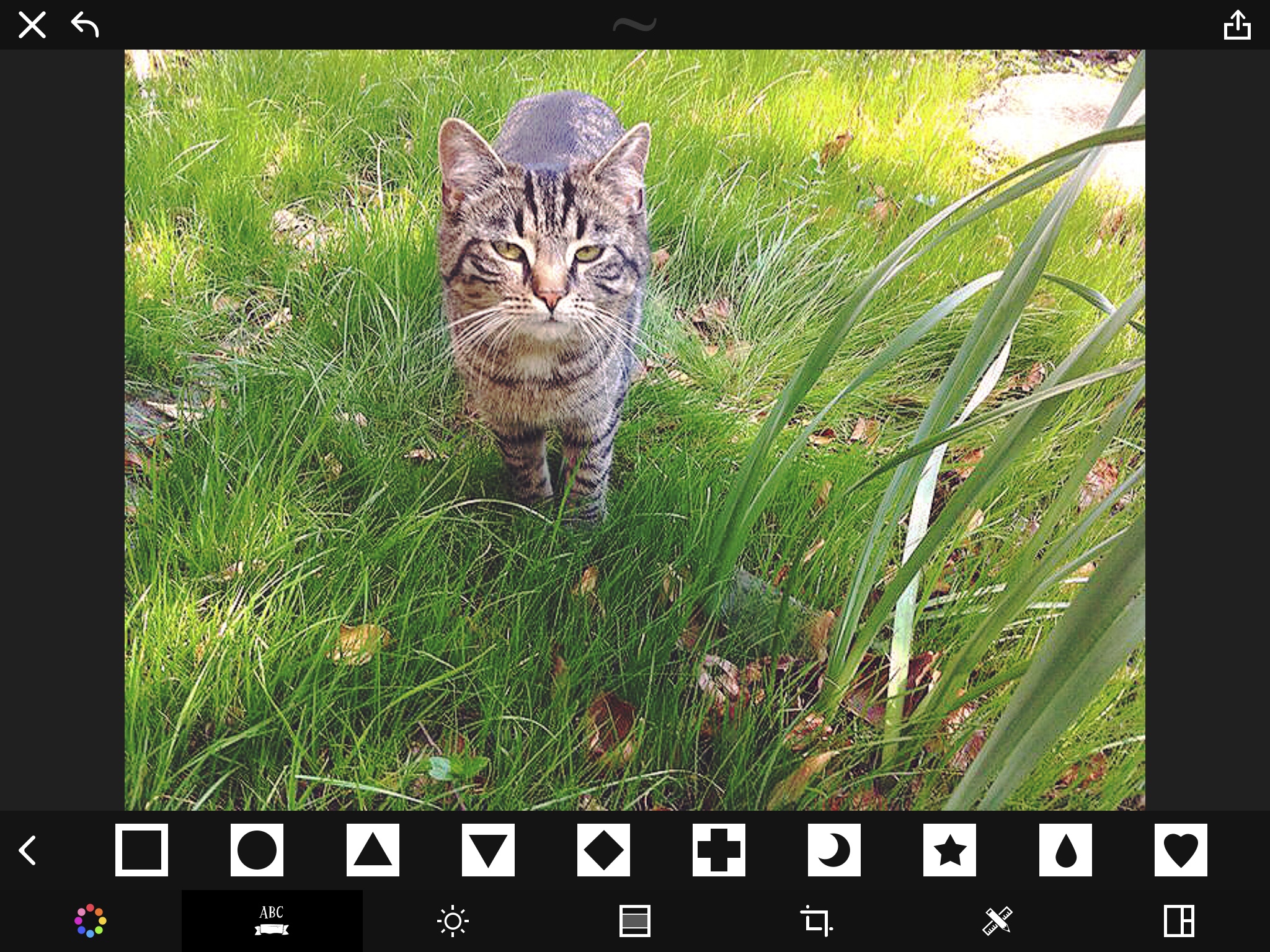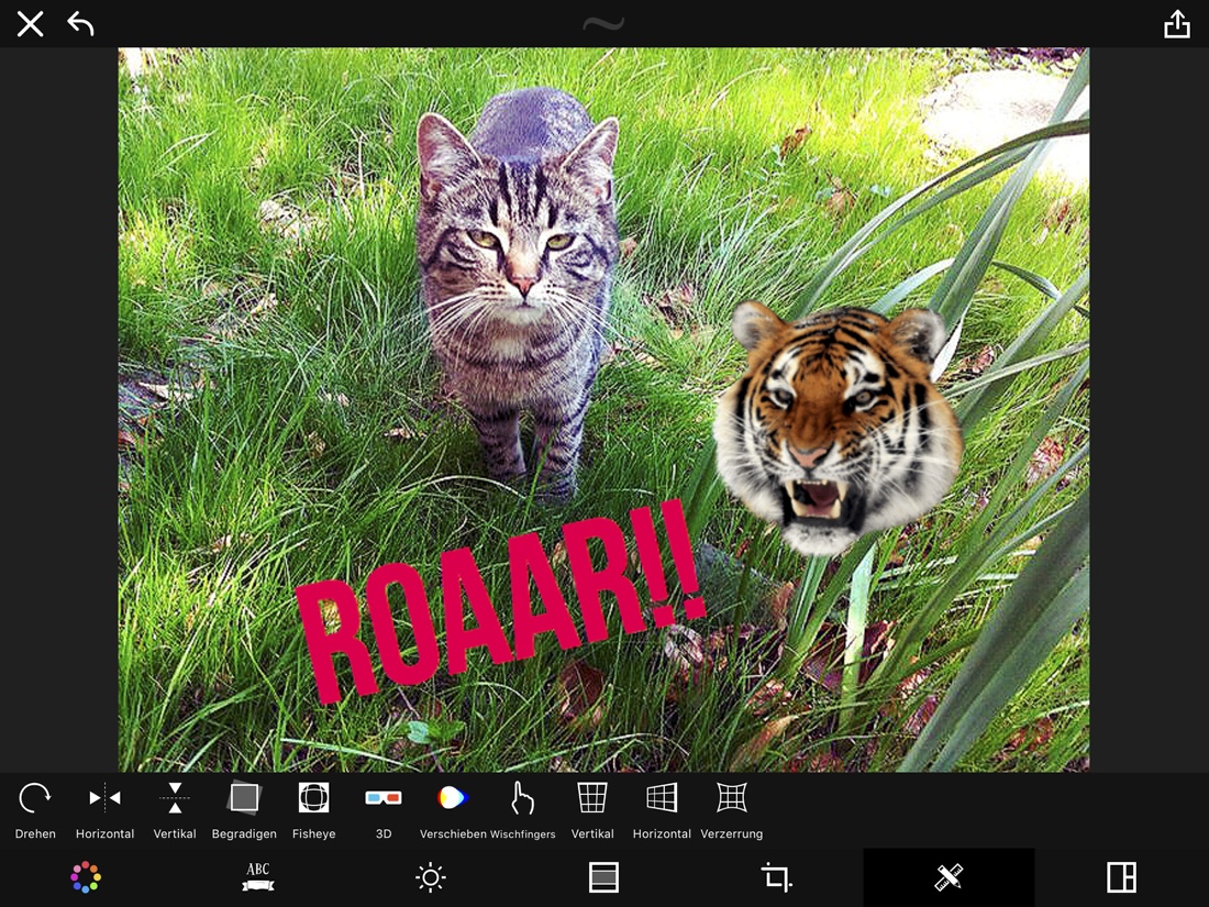 Eine App, die sehr viele Möglichkeiten bietet, ist „Camly“. Die Grundversion ist gratis, nervt aber etwas mit Werbung. Immerhin kannst du die App so erst einmal ausprobieren. Alle Funktionen gibt es aber nur in der „Pro-Version“. Das ist leider bei vielen Apps so. „Camly Pro“ kostet 4,99 Euro. Du kannst mit „Camly“ Fotos machen oder bereits gespeicherte Fotos bearbeiten. Es gibt jede Menge Filter und Effekte sowie Rahmen und Sticker. Du kannst deine Bilder auch mit Texten und Sprechblasen versehen. Tippe auf das „ABC“-Symbol und auf „Text“, gib etwas ein und tippe auf das Häkchen rechts. Du kannst den Text größer oder kleiner machen und mit dem Finger an einen bestimmten Ort ziehen. Tippst du auf das Sonnen-Symbol, kannst du Licht, Schärfe und vieles mehr einstellen. Probiere es einfach aus! Denn das Experimentieren ist gerade das Schöne an der digitalen Fotografie.