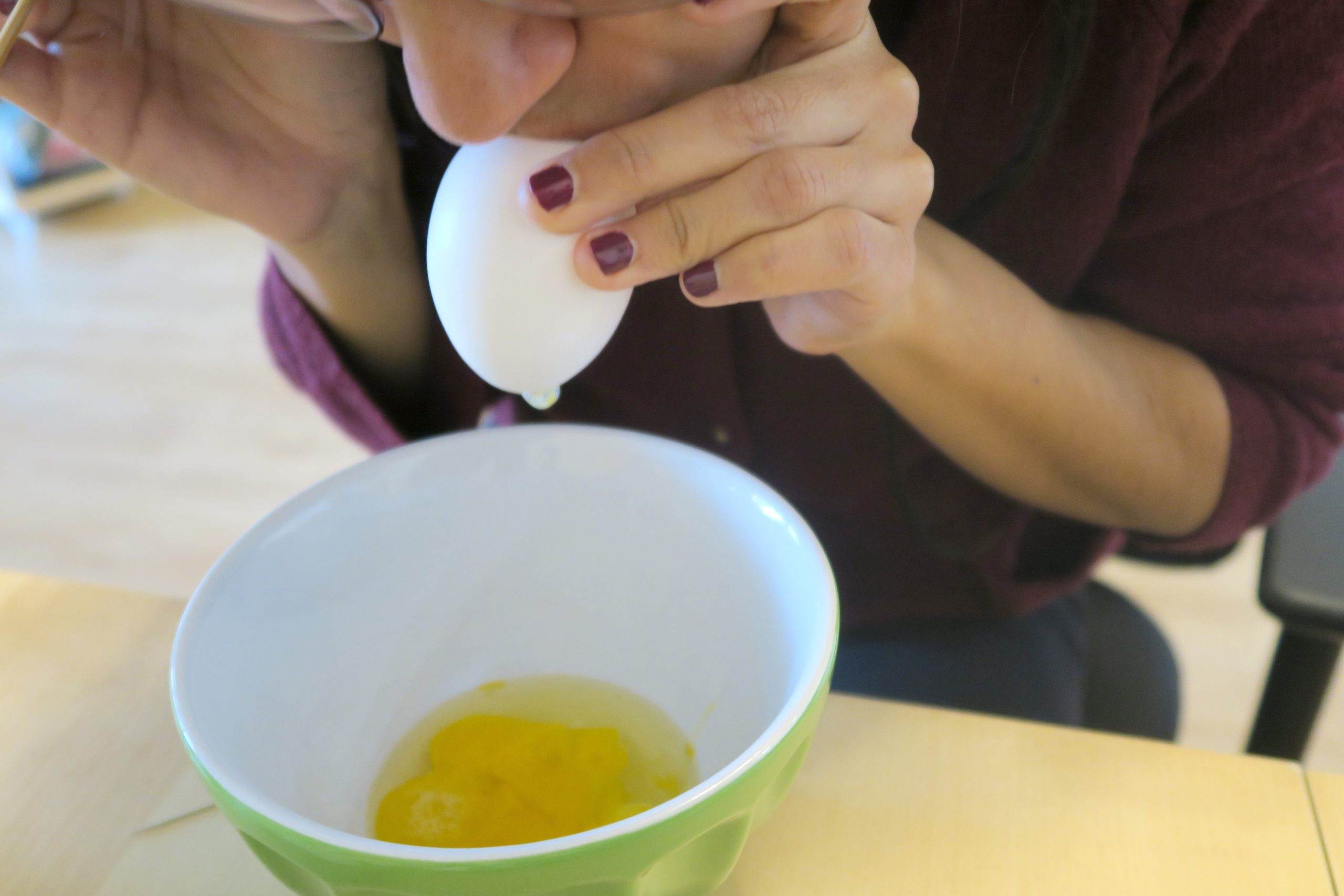 Stechen, verquirlen, pusten, so werden Eier ausgeblasen: Zunächst sollest du die Eier gründlich mit Wasser und Seife waschen. Anschließend werden sie mit Essig abgerieben. Dadurch haftet die Farbe später besser. Sind die Eier trocken, kann es losgehen.