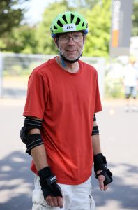 Im Workshop geht es vor allem um den Spaß – und um die richtigen Bremstechniken. Denn nur so werden Unfälle verhindert. Ganz wichtig ist die Schutzausrüstung: ohne Helm, Hand- und Knieschoner darf bei uns niemand fahren. Bei der Technik geht es um gute Koordination, aber in erster Linie um die Freude am Fahren. In unseren Kursen werden die Teilnehmer sehr schnell sicherer und besser auf den Skates. Sie lernen auch das Carven, also schnell und sicher Kurven zu fahren. Ich setze beim Training immer gerne Bälle ein. Fußballspielen auf Inlinern klappt zum Beispiel super.