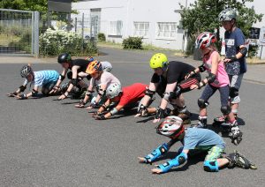 Ziel ist, dass die Kinder Brems-, Sturz- und Fahrtechniken lernen. Der Workshop geht über zwei Termine, Kinder ab fünf Jahren und ihre Eltern können mitmachen. Beim ersten Termin werden Fallen, Bremsen und einfache Grundtechniken des Inline-Skatens geübt. Beim zweiten Treffen wird das Kurvenfahren trainiert sowie verschiedene Stoppvarianten. Viele Kinder lieben vor allem die „Notfallbremse“ auf den Knien – weil sie so spektakulär aussieht. Sicherheit ist im Kurs sehr wichtig: Alle Kinder kontrollieren zum Beispiel gegenseitig, ob ihr Helm auch richtig sitzt.