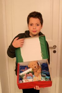 Dabei schenkt man einem Kind einen Karton voller Geschenke, dass sonst an Weihnachten nichts geschenkt bekommen würde. Das Kind selber kennt man nicht, aber es gibt drei Altersgruppen aus denen man auswählen kann: 2-4, 5-9 und 10-14 Jahre. Ich habe mich für die mittlere Gruppe und einen Jungen entschieden. Die Pakete werden in zehn europähische Länder geschickt, wie zum Beispiel nach Rumänien, Polen und Lettland.