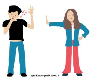 Bekommt man Angst oder fühlt sich bedroht, kann man andere Leute in der Nähe ansprechen und um Hilfe bitten. Oder man ruft die Polizei. Das geht unter der Nummer 110. (dpa)