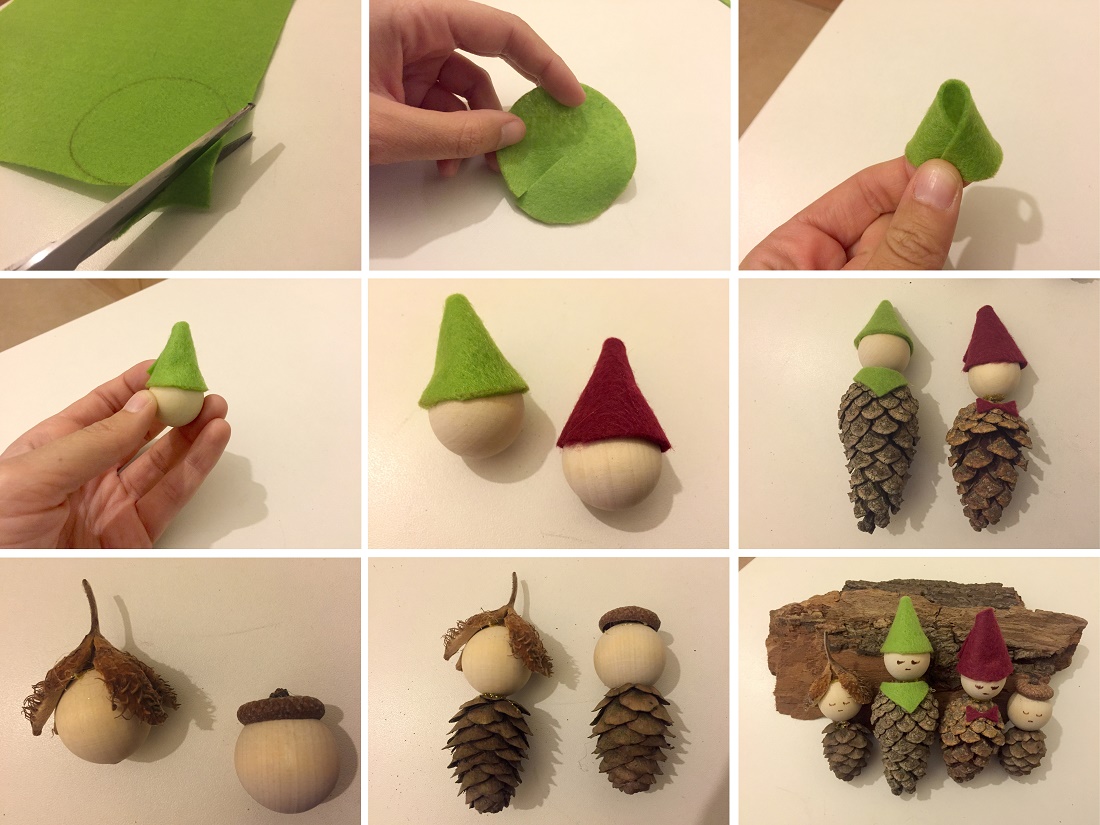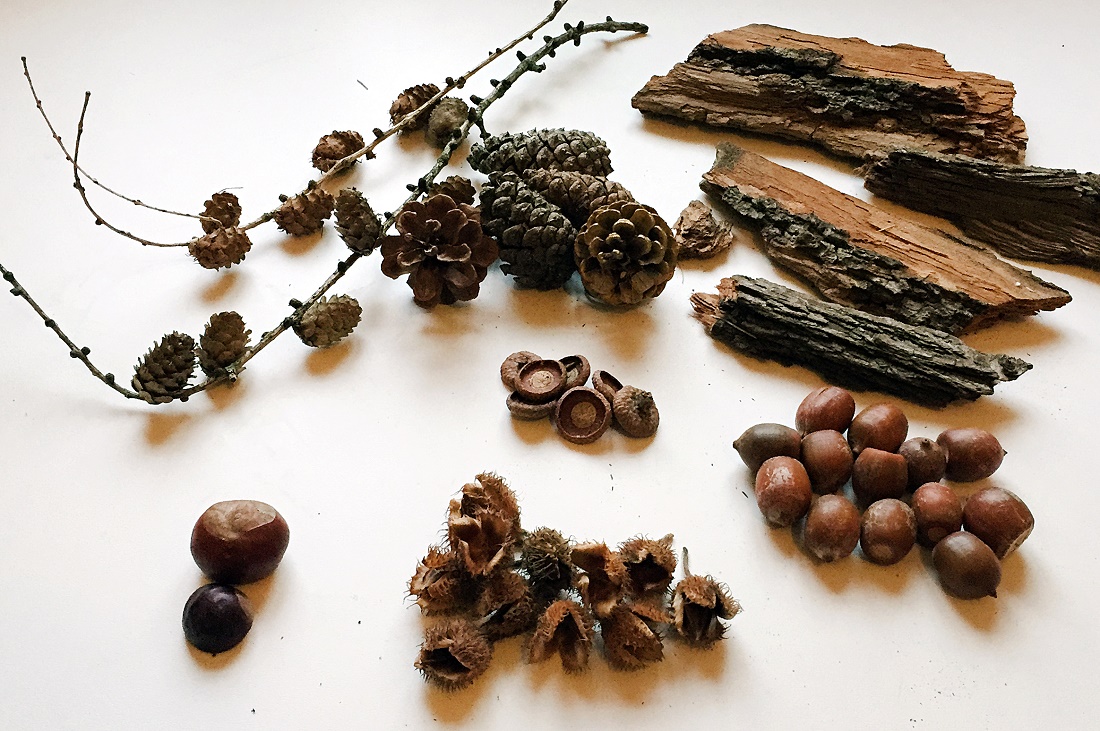 Tannenzapfen, Eicheln und Baumrinde: Wer beim Spaziergang solche Sachen sammelt, kann daraus einiges basteln – zum Beispiel lustige Wichtel und Tiere für den Advent.
