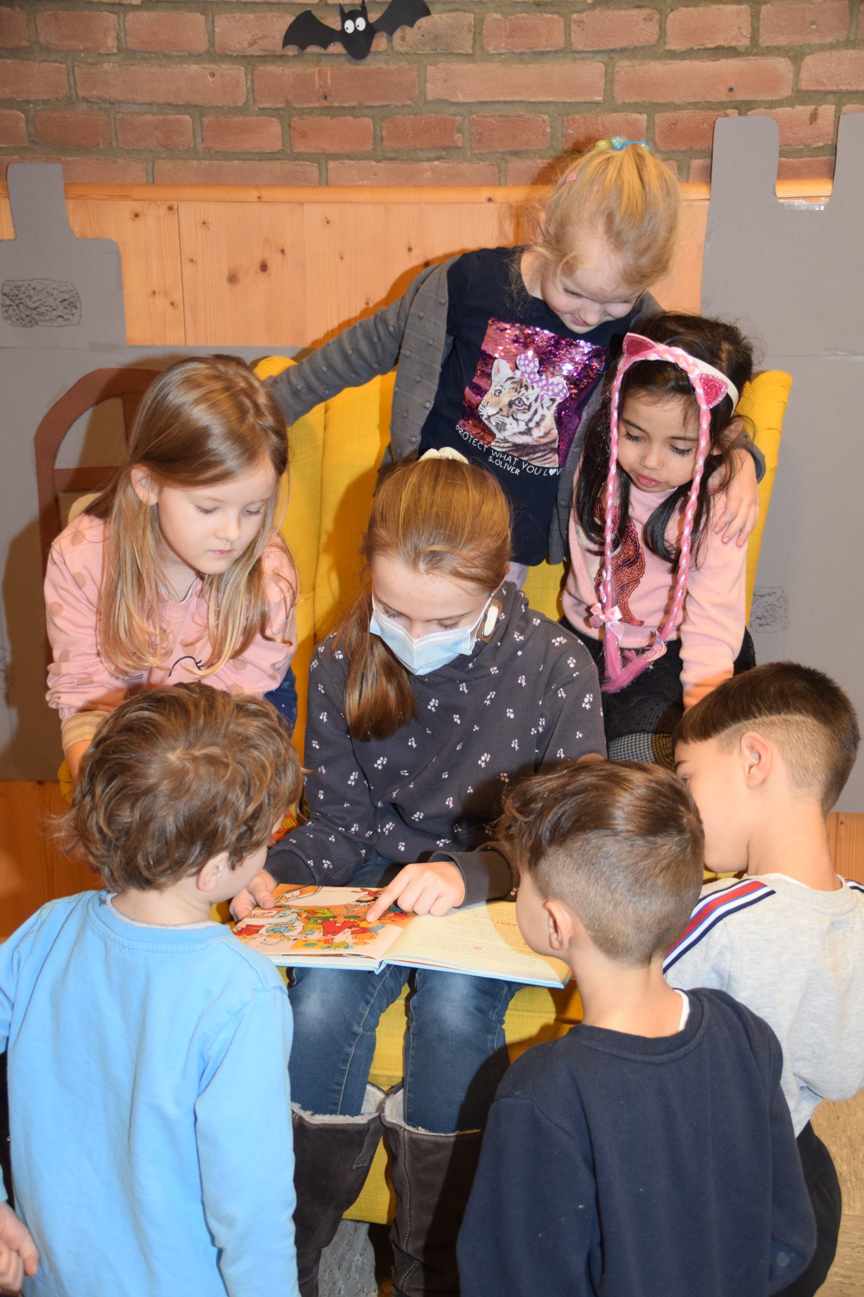 Frieda (11 Jahre), Vorleserin im Kindergarten