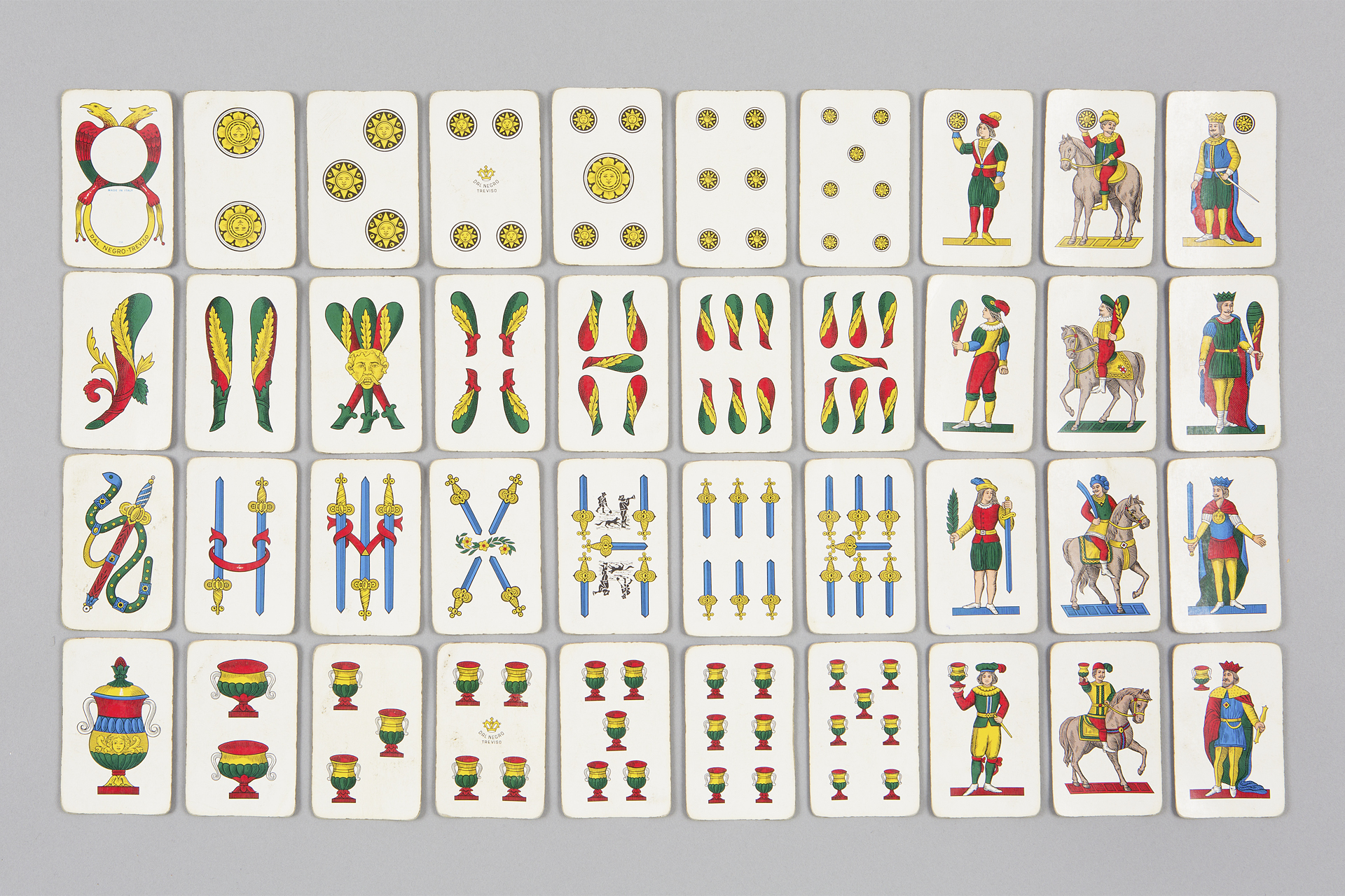 Ab dem Jahr 1950 ging es der Wirtschaft in Deutschland wieder besser, es gab viel zu tun. Weil es aber nicht genug Arbeiter gab, kamen sogenannte Gastarbeiter und halfen in den Fabriken. Viele stammten aus Italien. „In Pulheim-Stommeln gab es damals ein Internat für italienische Kinder“, erzählt Johanna Cremer. Die Kinder brachten das Kartenspiel „Scopa“ mit nach Deutschland. In Italien gab es nicht das französische Blatt mit Karo, Herz, Kreuz und Pik, das wir heute nutzen, sondern eines mit Münzen, Stäben, Kelchen und Schwertern. „Bei Scopa hat jeder drei Karten auf der Hand, vier liegen offen auf dem Tisch“, erklärt die Expertin. „Jeder versucht mit seinen Karten, den Tisch leer zu räumen.“ Das geht entweder mit der gleichen Karte oder dem entsprechenden Zahlenwert.