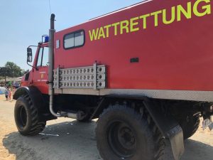 „Unser Unimog für die Watt-Rettung ist wie ein Rettungswagen ausgestattet“, erklärt Stefan Matthäus. Ein Unimog ist ein spezielles Fahrzeug, das auch über schwierigen Untergrund fahren kann. Zum Beispiel über Schlick und durch Wasser bis zu einer bestimmten Höhe. So werden verletzte oder erschöpfte Menschen aus dem Watt gerettet. „Dazu kommen Personen, die im Schlick stecken geblieben sind“, sagt Stefan Matthäus. Dann gibt es noch: „Unfälle mit Kutschen und Reitern, entlaufene Pferde, Personen, die vom Wasser eingeschlossen sind und so weiter“, zählt er auf. Manchmal müssen auch vermisste Menschen gesucht werden.