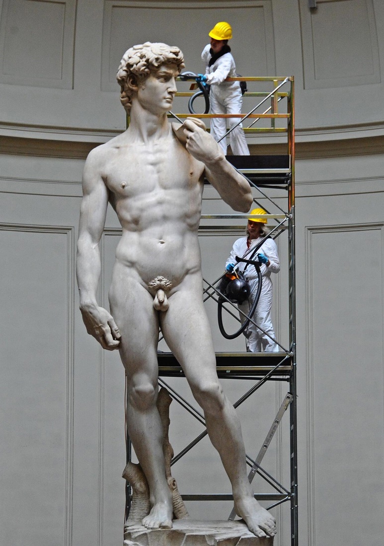 Die Bilder aus der Kapelle zeigen Szenen aus der Bibel und sind besonders: Erstens benutzt Michelangelo eine Technik, bei der die Figuren plastisch aussehen, fast wie 3-D. Zweitens malt er in Fresken. Bei einem Fresko wird der Putz auf die Wand gestrichen – und dann mit Farbe auf den nassen Putz gemalt. Dabei dürfen keine Fehler passieren. Denn sonst muss man den Putz abschlagen und wieder von vorne anfangen. Die Kirchenvertreter waren so zufrieden mit Michelangelo, dass er mehr als 20 Jahre später noch ein weiteres Fresko in der Kapelle malen sollte. Eines gefiel ihnen aber gar nicht: Michelangelo hatte Männer nackt gemalt. Nach seinem Tod wurden ihre Geschlechtsteile übermalt.