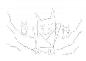Zeichne nun zwei Dreiecke in den Körper der Fledermäuse. Das sind die Flughäute, mit denen sie sich zudecken.