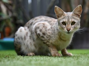 Savannah-Katzen sind eine Mischung aus einer wilden Katze und Hauskatzen. Foto: Arne Dedert/dpa