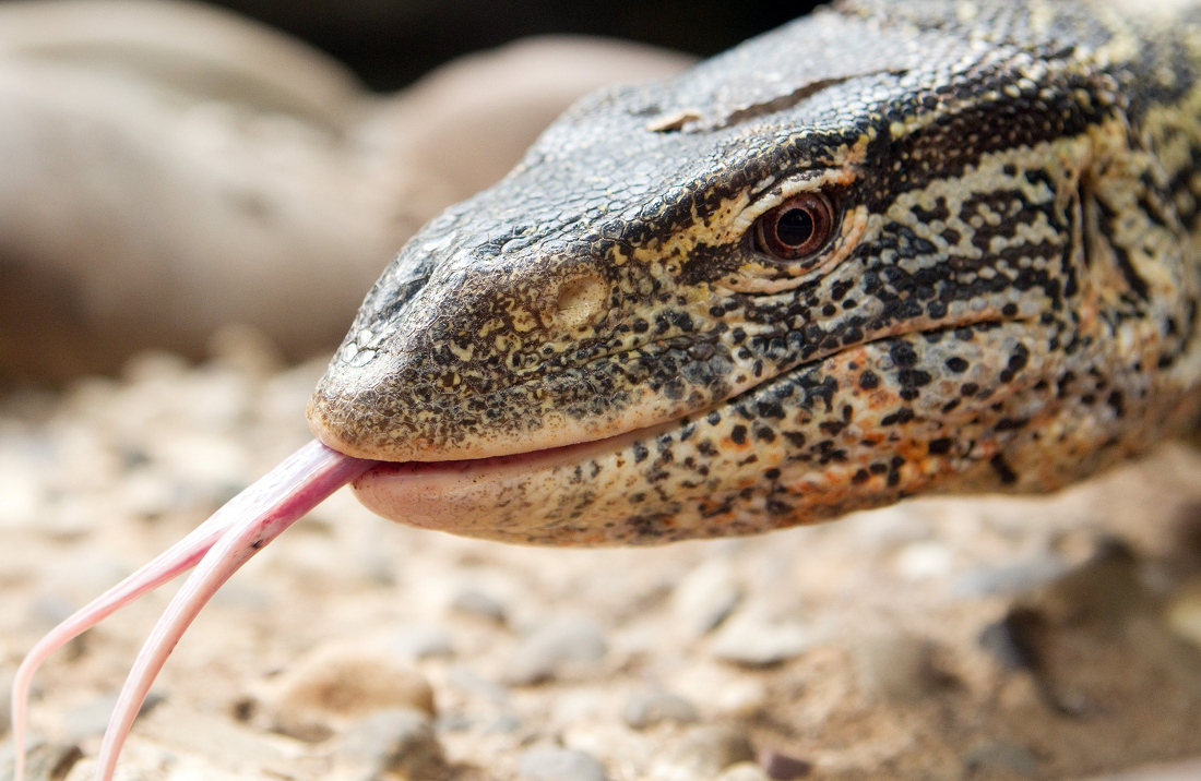 - Verhalten: Warane sind Einzelgänger und nur tagsüber aktiv. Nachts verstecken sie sich in Baumhöhlen oder Erdlöchern. In diese Verstecke ziehen sie sich auch zurück, wenn es in der Trockenzeit nur wenig Nahrung gibt und sie Energie sparen müssen. Mit ihrer langen, gespaltenen Zunge können die Warane ihre Beute riechen und finden. Um sie zu fangen und festzuhalten, betäuben die Tiere sie mit einem Gift, das sich in ihrem Speichel befindet.
