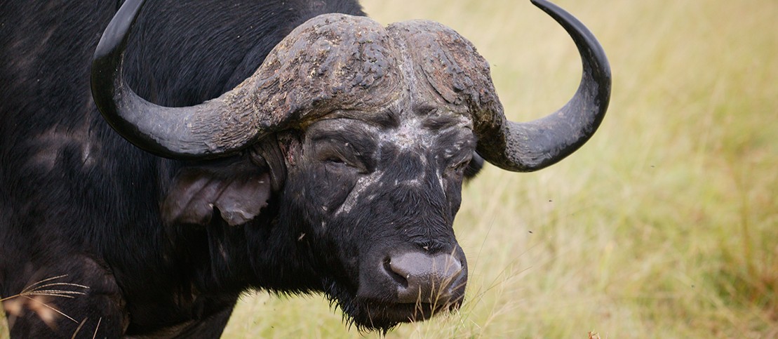Typisch für den Büffel sind seine langen, geschwungenen Hörner. Sie können bis zu 1,5 Meter lang werden. Der Büffel hat außerdem kräftige Hufe – und wenn er mit anderen Mitgliedern seiner Herde einmal losläuft, kann es für Mensch und Tier brenzlig werden.
