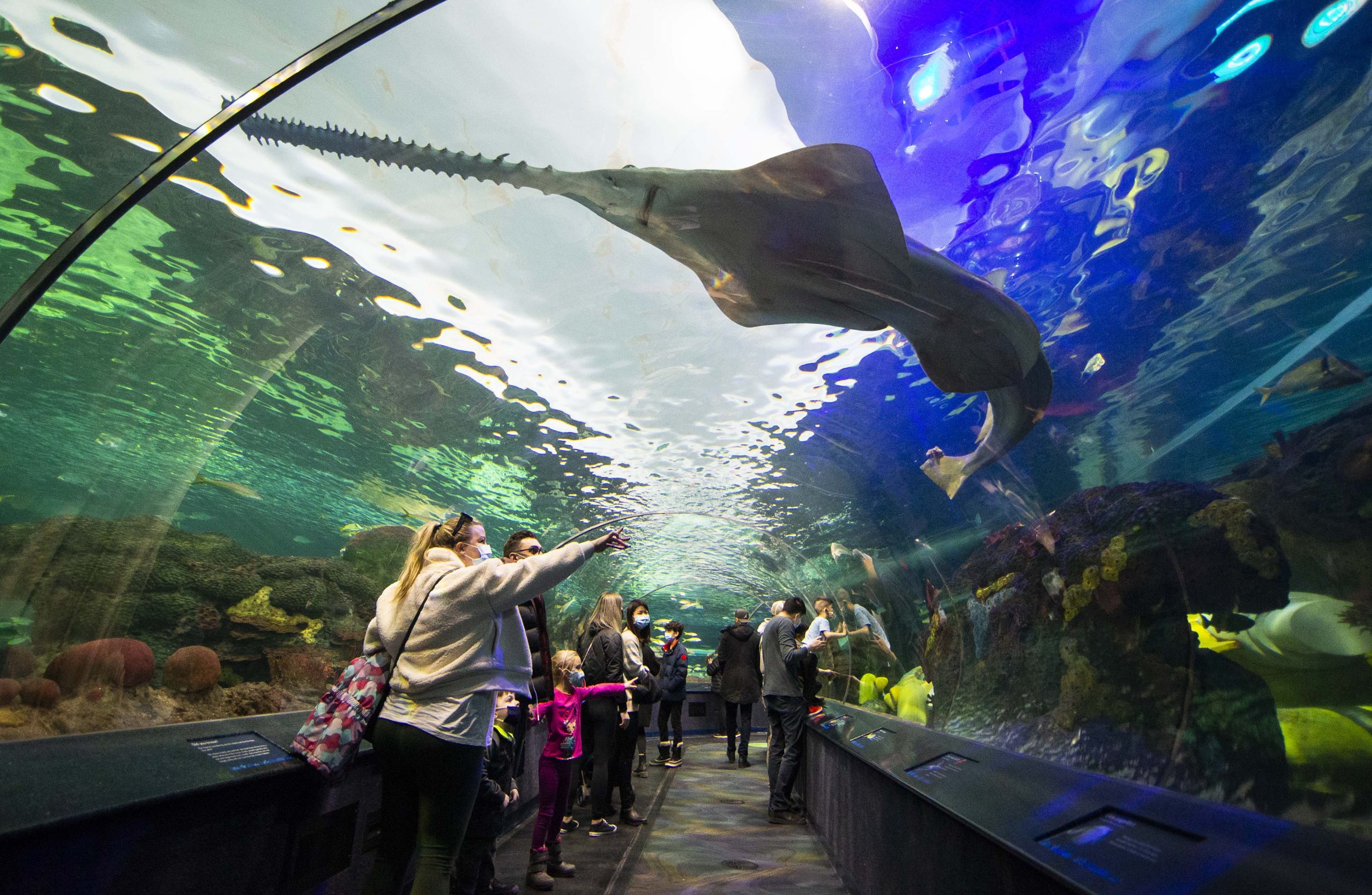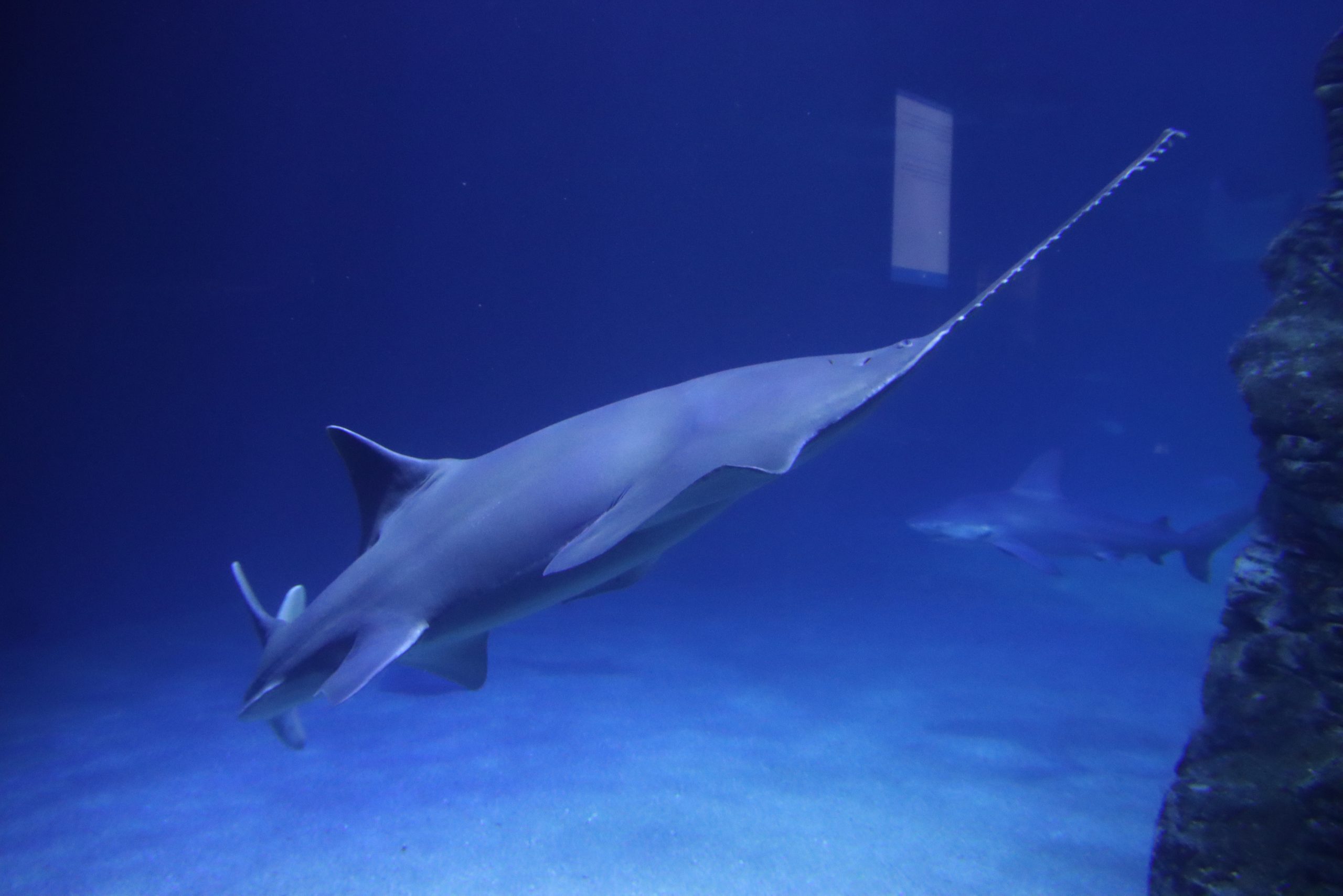 In diesem Aquarium lebt ein Sägefisch. In der Natur sind die Tiere sehr viel schwerer zu finden, denn es gibt nicht mehr sehr viele. Foto: Philipp Brandstädter/dpa