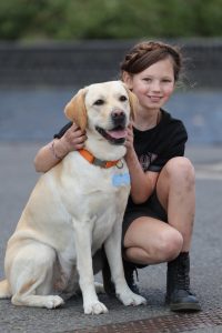 Erna Westphal und Hundedame Ida spielen beim Film «Die unlangweiligste Schule der Welt» mit. Foto: Joerg Carstensen/dpa