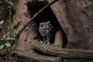 Von Ginger fehlt jede Spur. Die Kleinfleck-Ginsterkatze ist nicht zu entdecken. Nadja Niemann winkt deshalb mit einer kleinen weißen Maus. „Mal gucken, ob wir Ginger damit bestechen können“, sagt die Biologin aus dem Zoo Gelsenkirchen. Auch wenn Kleinfleck-Ginsterkatzen mit ihren Leopardenflecken und der süßen Stupsnase niedlich aussehen, sie sind kleine Raubtiere und keine Schmusekatzen für zu Hause. Sie fressen gerne Mäuse, Vögel oder Insekten, aber auch Obst und Gemüse.