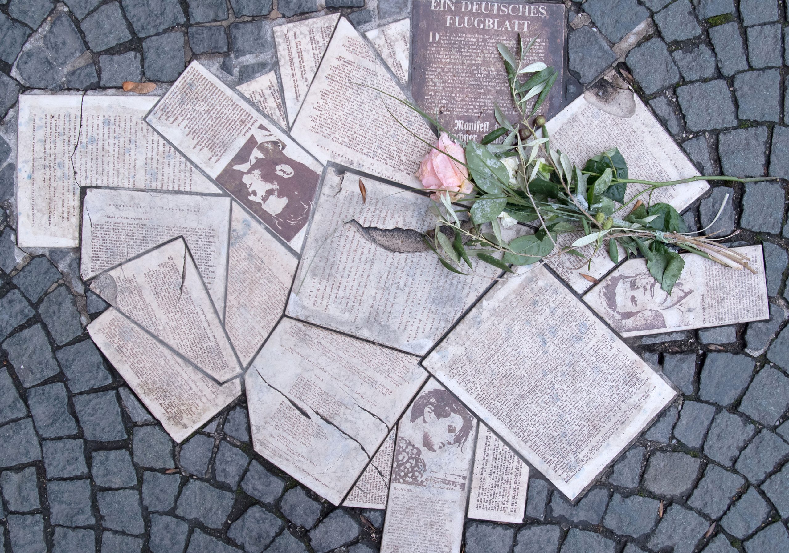 Heute erinnert in München ein Denkmal an die Flugblätter, die Sophie Scholl und ihre Mitstreiter verteilten. Foto: Sven Hoppe/dpa