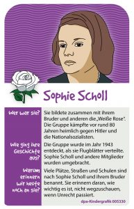Traurig daran ist auch: Die Arbeit der „Weißen Rose“ blieb ohne Erfolg. Es gab keinen Aufstand, keinen Protest. Trotzdem ist Sophie Scholl heute berühmt. Fast jeder kennt ihren Namen. Es gab nur wenige, die sich trauten, Widerstand zu leisten. Deshalb sehen viele in Sophie Scholl heute eine Art Superheldin. Es gibt Filme über ihr Leben, Bücher, Statuen und Briefmarken. „In Sophie Scholl wurde wahnsinnig viel hineininterpretiert. Jeder meint, bestimmte Dinge in ihr erkennen zu können“, sagt Johannes Tuchel.