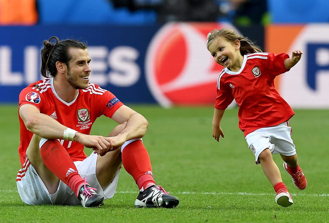 Die Spieler aus Wales feierten ausgelassen mit ihren Kindern. Fußball-Superstar Gareth Bale – angeblich der schnellste Fußballer der Welt – tanzte, rannte und blödelte nach dem Sieg gegen Irland mit seiner Tochter Alba Violet. Zwischenzeitlich stand Alba Violet sogar auf dem Kopf. Alba Violet ist die ältere von zwei Kindern. Ihre jüngere Schwester Nava Valentina kam im März auf die Welt.