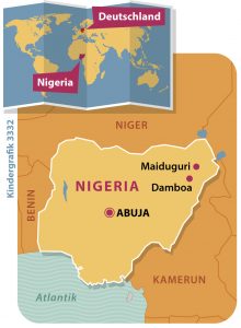 Menschen, die in langen Schlangen für Essen anstehen. Kleine Kinder, die krank sind und unterernährt. Solche Bilder erreichen uns immer wieder aus dem Land Nigeria. Es liegt im Westen des großen Kontinents Afrika.