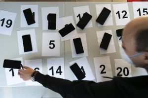 Die App kann man sich aufs Smartphone laden. Sie läuft nicht auf allen Handys, aber auf sehr vielen. Dann muss man die Funktion Bluetooth anschalten. Die braucht man zum Beispiel auch, um das Handy mit kabellosen Kopfhörern zu verbinden. Über Bluetooth können sich auch zwei Handys miteinander verbinden. Außerdem muss man die sogenannte „Covid-19“-Funktion freischalten. Das geht in den Einstellungen. Wenn sich nun zwei Menschen treffen, die die App auf dem Handy haben, erkennen die Geräte das. Sie tauschen eine Zahlenfolge aus. Diese Zahlenfolge wird zwei Wochen lang auf dem Handy gespeichert.