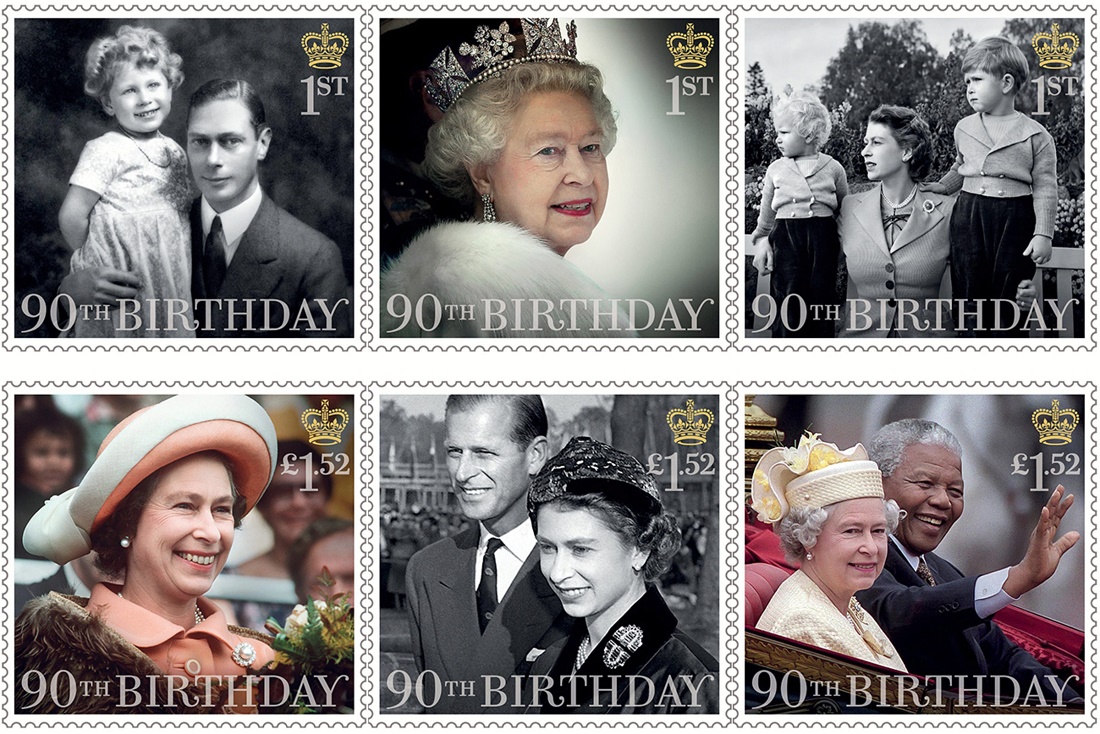 Briefmarken-Sammlung: Königin Elizabeth II. als Kind mit ihrem Vater (oben links) und als Erwachsene (Foto: dpa)