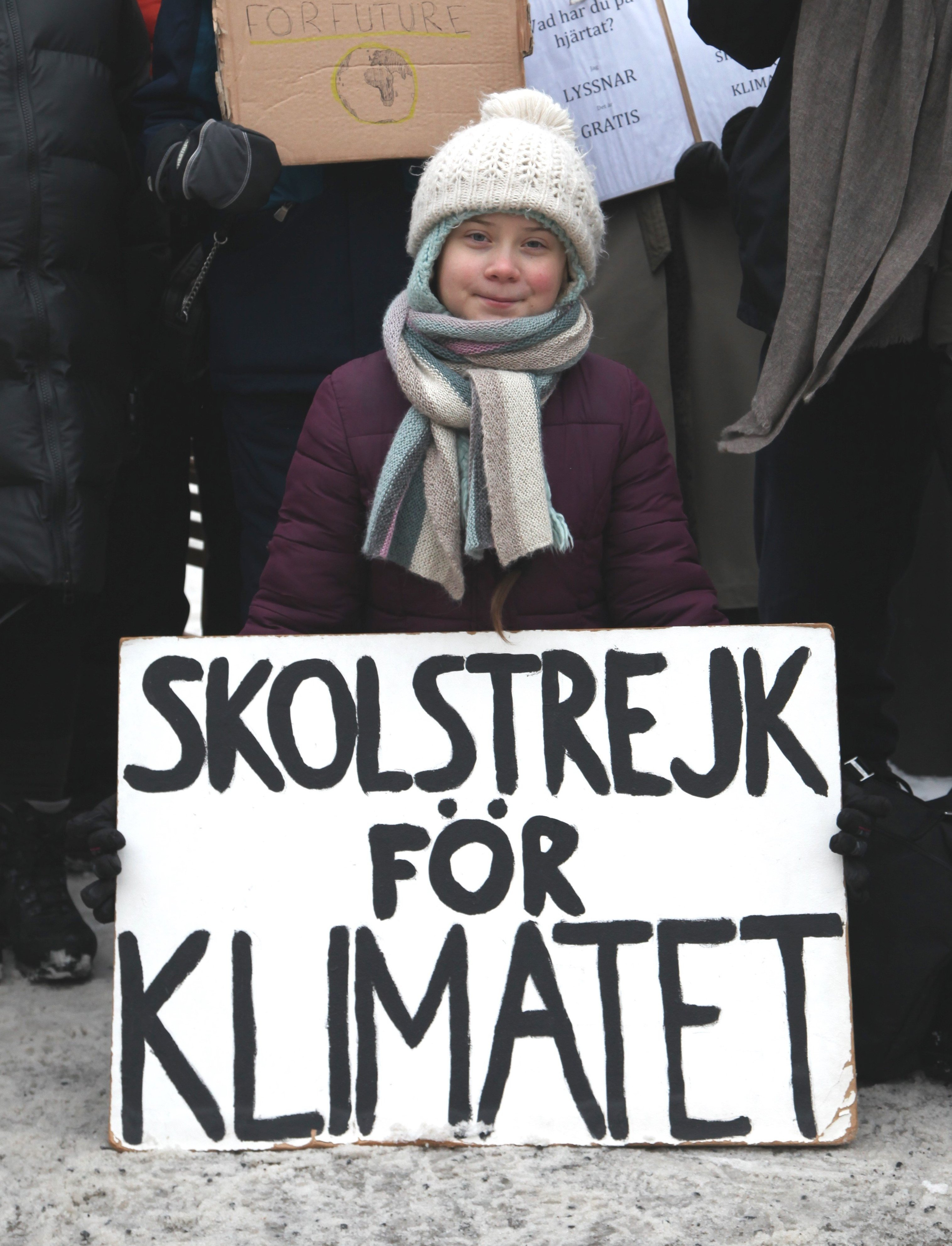 Greta Thunberg demonstriert mit ihrem Plakat. Darauf steht übersetzt: Schulstreik für das Klima. Foto: Steffen Trumpf/dpa