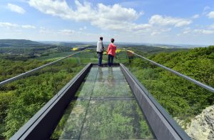 Der gläserne Steg schwebt über einer Klippe. Er befindet sich auf dem Sonnenstein im Eichsfeld. Der Berg liegt im Bundesland Thüringen, in der Mitte Deutschlands. Am Mittwoch soll die Aussichts-Plattform eröffnet werden.