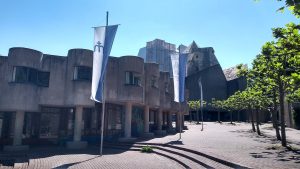 Dieser Stil war bis vor etwa 40 Jahren sehr modern. Kirchen und Büchereien wurden so gebaut, aber auch Universitäten, Rathäuser und große Wohngebäude. Heute finden viele Leute diese Gebäude gar nicht mehr schön. Das hat unter anderem damit zu tun, dass sie aus einem bestimmten Material gebaut sind: Beton. Sehr viel Beton!