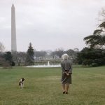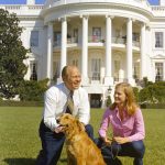 - 1989, First Lady Barbara Bush mit dem Familienhund Millie. Foto: Barry Thumma/AP/dpa