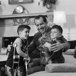 - 1969, Präsident Richard Nixon mit zwei jüngeren Besuchern und dem Hund Pascha, ein Yorkshire Terrier. Foto: Anonymous/AP/dpa