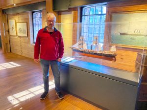 Im Internationalen Maritimen Museum in der Stadt Hamburg führt Gerrit Menzel Menschen durch die Ausstellung. Foto: Patrick Nägele/dpa