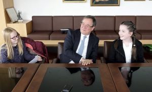 Armin Laschet mit unseren Kinderreporterinnen Leá-Zoe und Charlotte (Foto: Grönert)