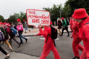 Beim G20-Gipfel in Hamburg treffen sich die Staatsoberhäupter der 20 mächtigsten Länder, um gemeinsam über wichtige Fragen zu sprechen. Unter anderem geht es um den Klimawandel und den Umgang mit Krieg und Hunger auf der Welt. Viele Demonstranten kommen nach Hamburg, und die eigentlich friedlich geplanten Demonstrationen werden plötzlich gewalttätig. Nachdem einige Chaoten viele Autos und anderes zerstörten, werden nicht nur die Schuldigen gesucht, sondern auch Vorwürfe gegen die Polizei laut. Die soll nicht richtig auf die Chaoten vorbereitet gewesen sein, sagen manche. Insgesamt waren mehr als 20000 Polizisten in Hamburg, aber der Schaden, der durch die Krawalle entstanden ist, ist ungefähr 12 Millionen Euro teuer, sagen Experten.